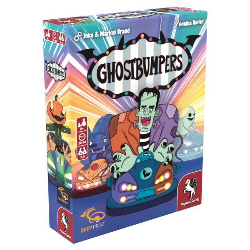 În Ghostbumpers, monștrii au invadat parcul de distracții, iar jucătorii pornesc într-o cursă nebună cu mașinuțele. Fiecare încearcă să-și păstreze calmul, câștigând exact atâtea mâini cât și-a propus - nici mai multe, nici mai puține. Cu fiecare truc câștigat, crește riscul ca personajul tău să se sperie și să piardă runda, dar cei care își asumă riscuri calculate pot obține cele mai mari punctaje. Jocul adaugă reguli speciale care transformă fiecare partidă într-o confruntare plină de râsete, strategie și întorsături neașteptate pentru cei 3-6 jucători.