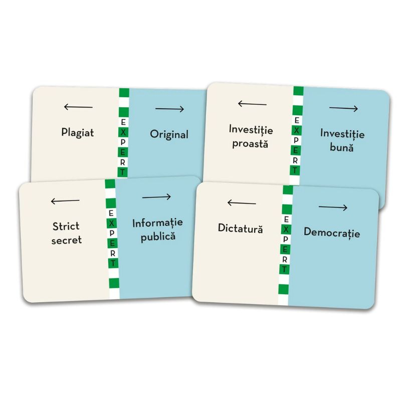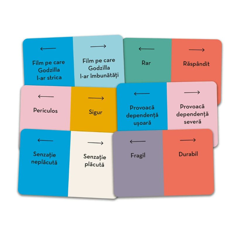 După aceea, decide ce indiciu să dea, în funcție de cartea cu două variante aleasă pentru această tură. Fiecare carte este împărțită în două și conține două concepte opuse (ex.: rece/cald, fără gust/cu mult gust, invenție folositoare/invenție nefolositoare), iar fiecare dintre aceste concepte este asignat unei jumătăți de disc.