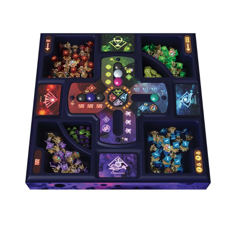Fiecare rundă combină o fază de energie, în care deplasezi token-uri pe tabla principală pentru a obține resurse, cu o fază de craft, în care construiești efectiv galaxia ta prin plasarea de stele, nebuloase și forme de viață incipientă. Jocul oferă multă libertate de decizie, permițându-ți să efectuezi acțiuni în orice ordine și să folosești cărți speciale pentru a manipula gravitația, timpul sau alte efecte cosmice. Competiția pentru obiective universale și posibilitatea de a crea viață avansată pentru puncte bonus adaugă profunzime și replayability fiecărei partide de joc.