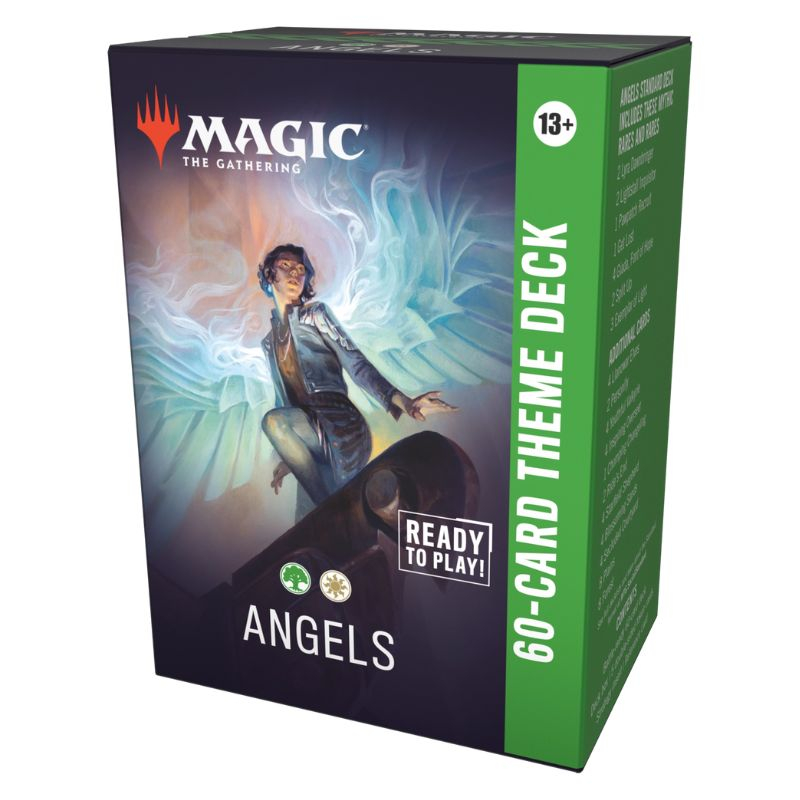 Magic: The Gathering - Lorwyn Eclipsed Theme Deck: Angels (Green, White) este un deck gata de joc pentru formatul Standard, construit în jurul creaturilor Angel care domină cerul și cresc în putere pe măsură ce jocul avansează. Strategia încurajează dezvoltarea în primele ture, urmată de recompense puternice pe termen mediu și lung, odată ce sinergiile intră în joc.