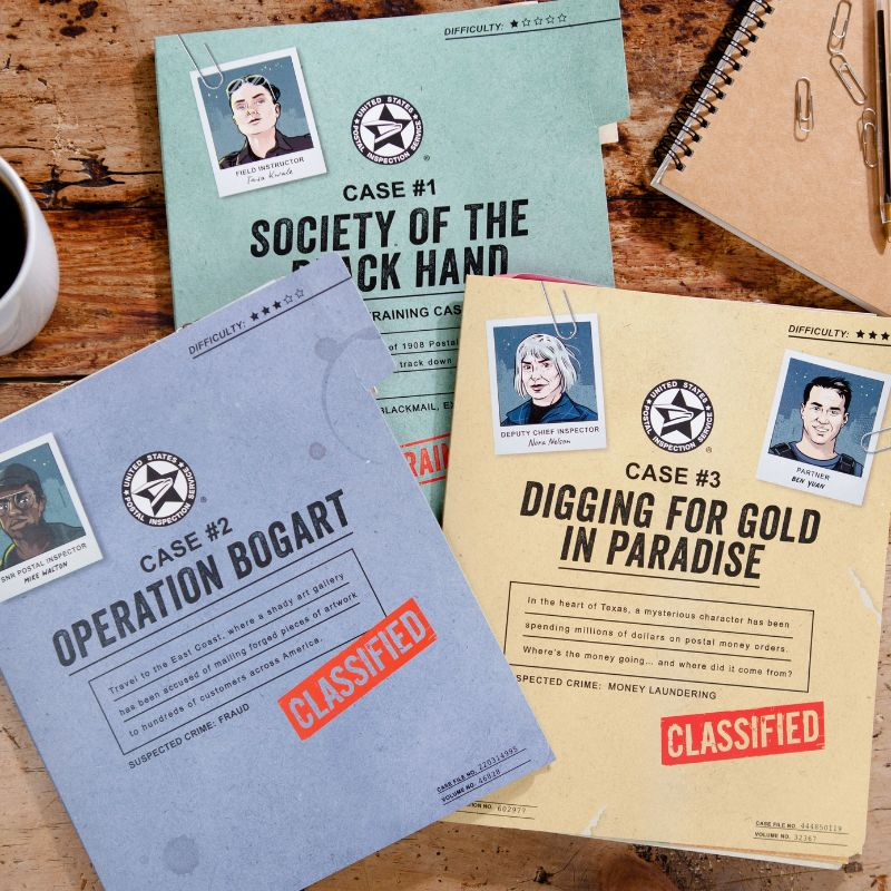 True Crime Stories este un joc de deducție și puzzle inspirat din cazuri reale ale U.S. Postal Inspection Service, unde jucătorii folosesc indicii și gândire strategică pentru a rezolva investigații de crimă organizată, artă coruptă și fraude misterioase, în 3 cazuri cu dificultate crescătoare.