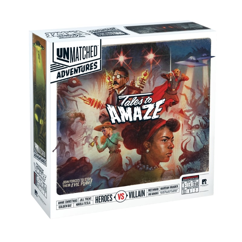 Unmatched Adventures: Tales to Amaze aduce o nouă modalitate de a juca Unmatched, transformând luptele directe într-o aventură cooperativă în care 1-4 jucători unesc forțele pentru a opri amenințări precum Alien Invader sau Mothman înainte ca planurile lor să devină realitate.