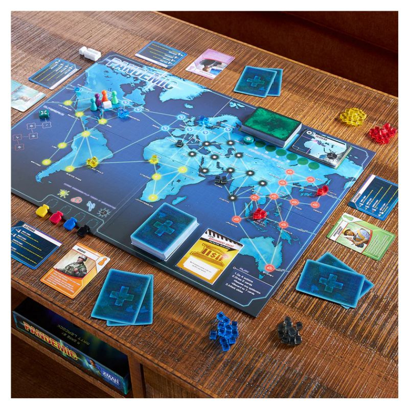 Pandemic e un joc cooperativ foarte popular, in care lupti impreuna cu prietenii tai pentru a preveni 4 virusi periculosi din a se raspandi, cu ajutorul mutarilor destepte si a cartilor cu orase.